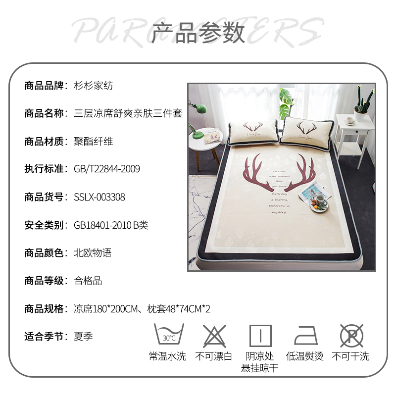 大版冰丝席凉席三件套【聚酯纤维/图片色】