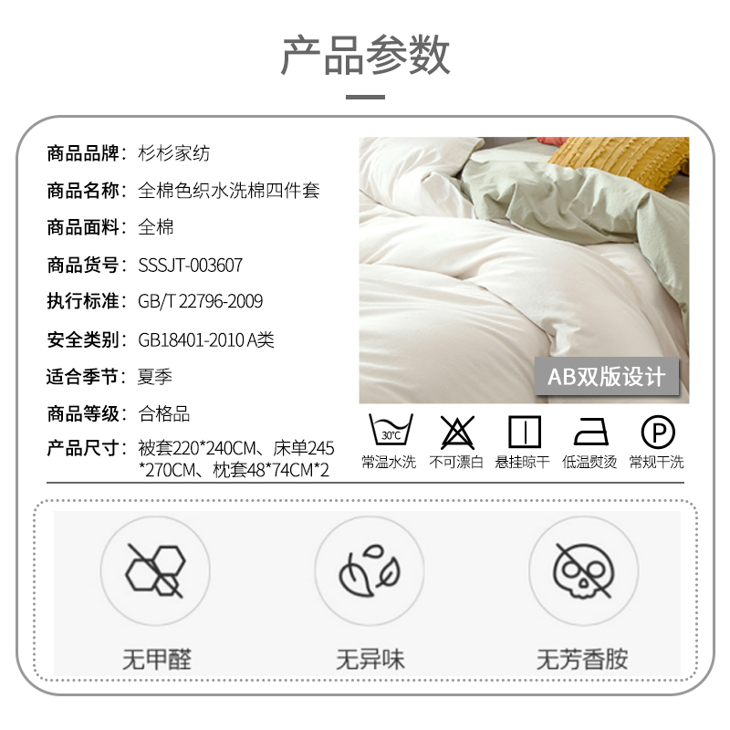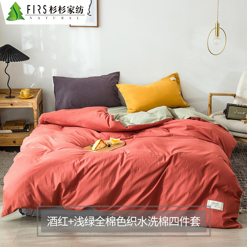 全棉色织水洗棉四件套【全棉/颜色自选】