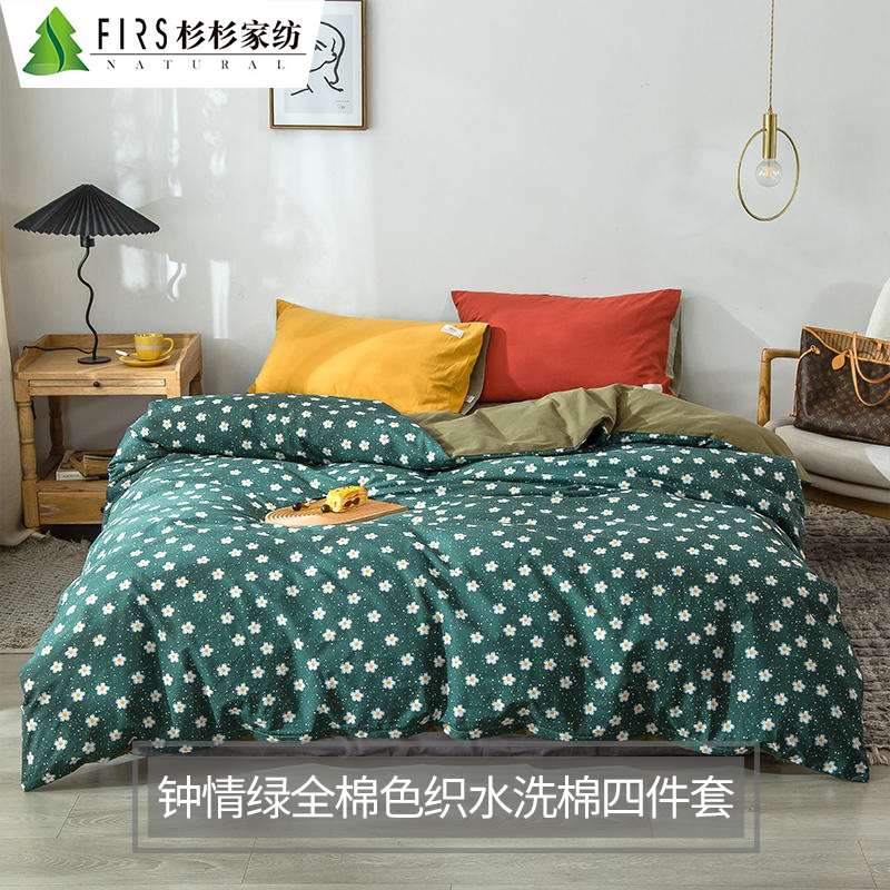 全棉色织水洗棉四件套【全棉/颜色自选】