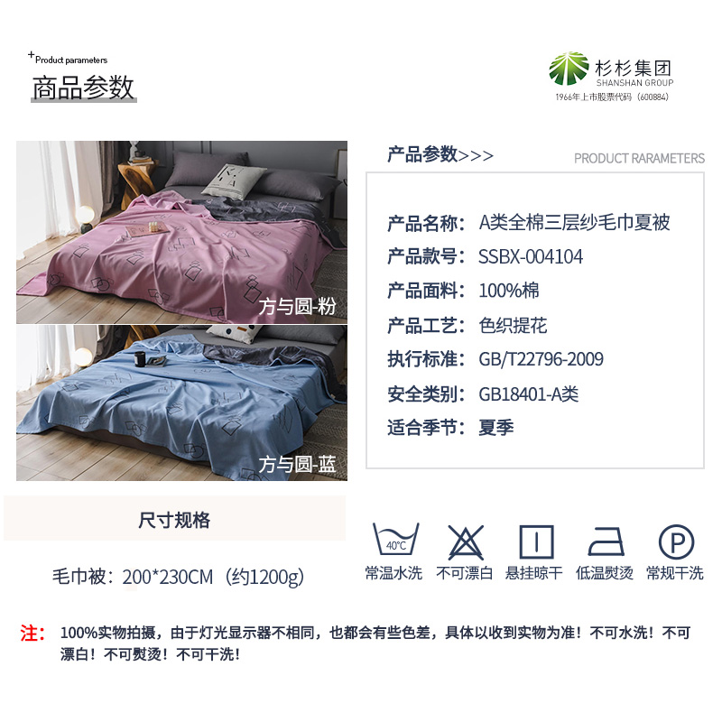 全棉高档三层纱毛巾被【全棉/颜色自选】