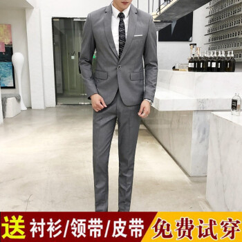 西服>>卡豪朗西服套装男2020四季新款商务休闲西装男韩版潮流职业正装小西装套装男绅士伴郎服新郎服结婚礼服 黑色(两件套) L