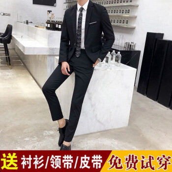 卡豪朗西服套装男2020四季新款商务休闲西装男韩版潮流职业正装小西装套装男绅士伴郎服新郎服结婚礼服 黑色(两件套) L |