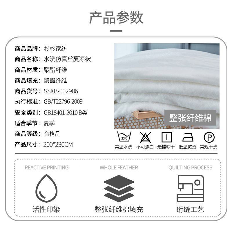 水洗仿真丝夏凉被【面料:聚酯纤维填充:聚酯纤维/颜色自选】