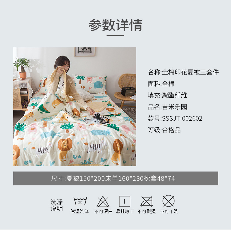 13070全棉夏被三件套【面料:纯棉填充:聚酯纤维/吉米乐园】
