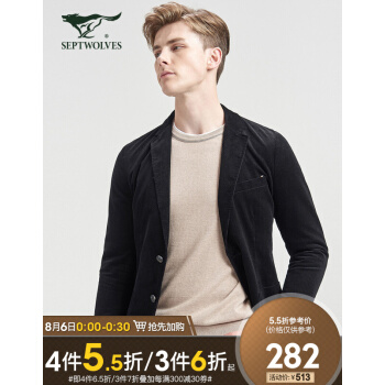 七匹狼西装西服新品男士商务休闲灯芯绒休闲单西 001(黑色) 190/104A/XXXXL |