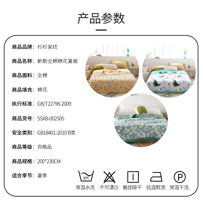 全棉棉花夏被【面料:全棉填充:棉花/颜色自选】