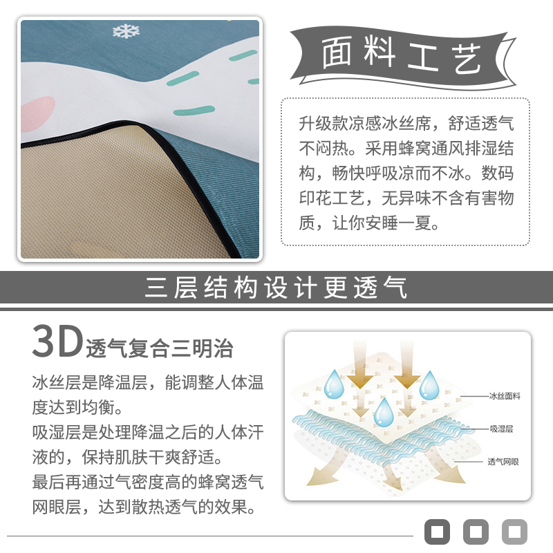 大版冰丝席凉席三件套【聚酯纤维/luck Duck】