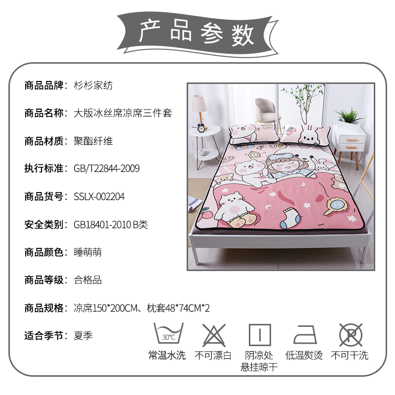 大版冰丝席凉席三件套【聚酯纤维/睡萌萌】