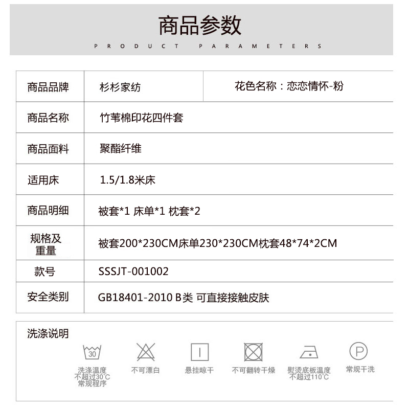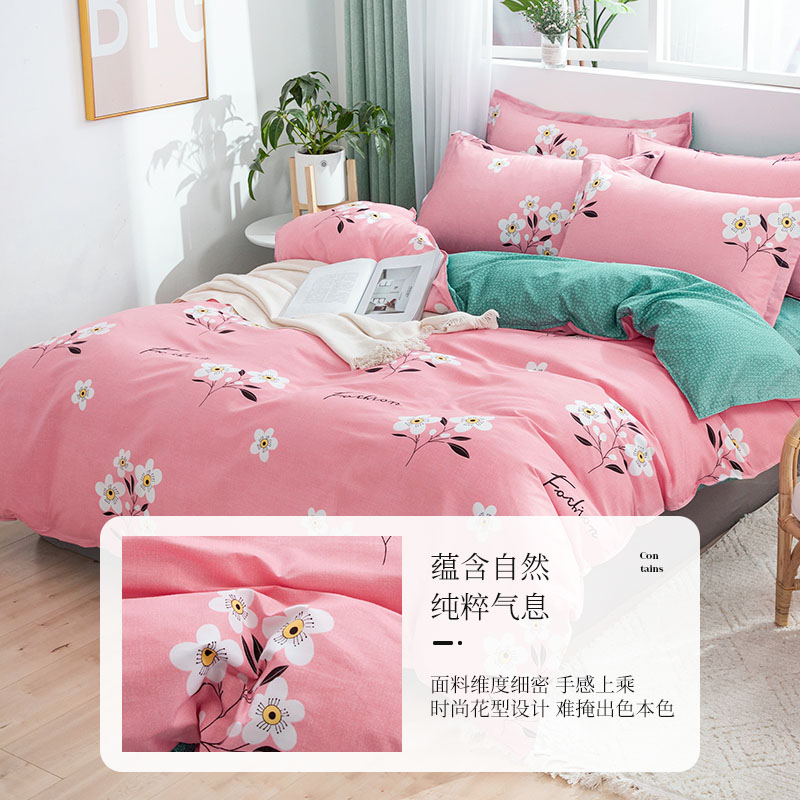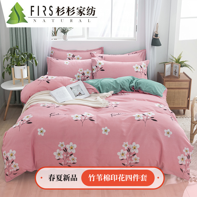 竹苇棉印花四件套【聚酯纤维/恋恋情怀-粉】