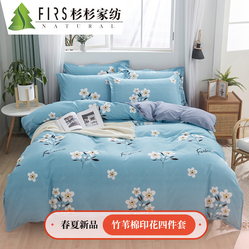 竹苇棉印花四件套【聚酯纤维/恋恋情怀-蓝】