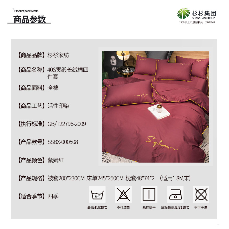 40s贡缎长绒棉四件套【全棉/紫嫣红】