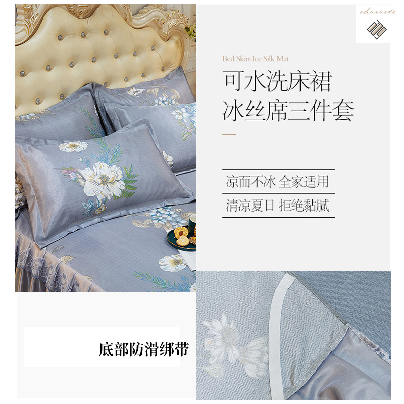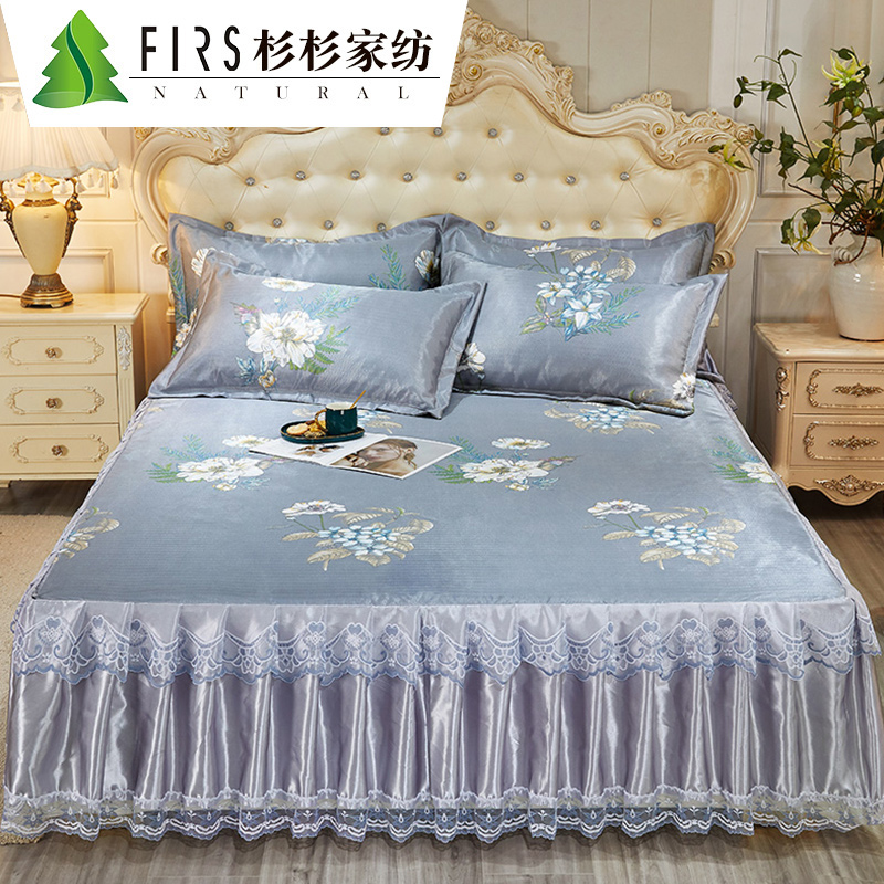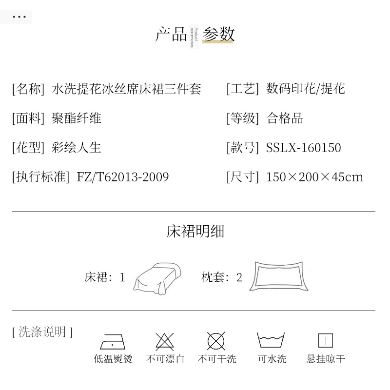 水洗提花冰丝席床裙三件套【聚酯纤维/彩绘人生】