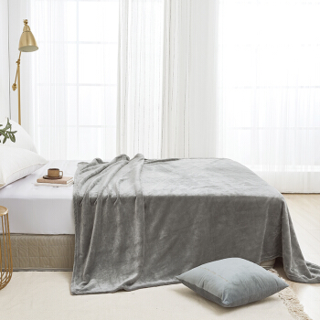 法兰绒毯子 超柔毛毯 午睡空调毯 加厚床单150x200cm 高级灰
