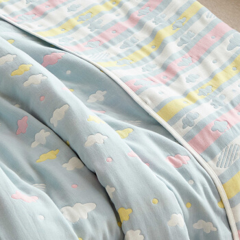 恒源祥 午睡空调被毛毯 纯棉三层纱布毛巾被全棉透气儿童夏凉盖毯子床单懒人毯 彩云蓝120×150cm