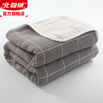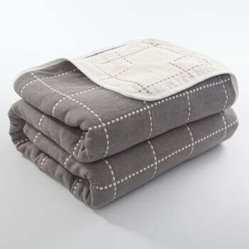 毯子毛毯>>北极绒 毛巾被纯棉全棉空调被六层纱布巾夏凉被盖毯毯子儿童午睡毛毯婴幼儿纱布浴巾 虚线格灰 90*100cm