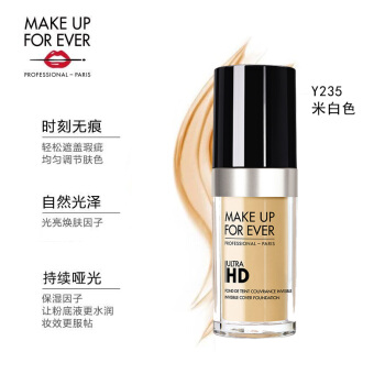 粉底>>玫珂菲 MAKE UP FOR EVER 全新清晰无痕粉底液Y235 30ml (UHD粉底 高清粉底 长效持装 黄调米白色)