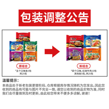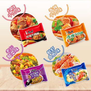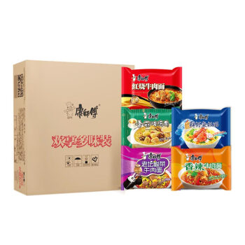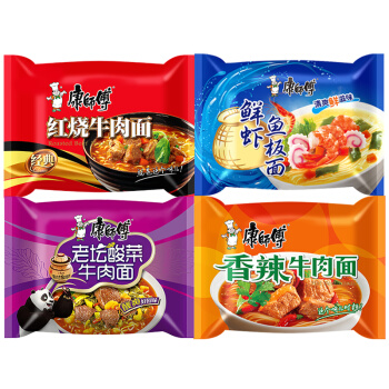 康师傅方便面红烧牛肉面5袋+香辣牛肉面5袋+鲜虾鱼板面5袋+香菇炖鸡面5袋+老坛酸菜牛肉面5袋袋面泡面整箱装
