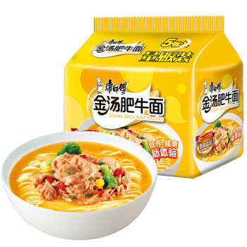 康师傅方便面熬制高汤金汤肥牛面袋面泡面五连包休闲零食 即食面