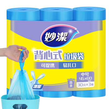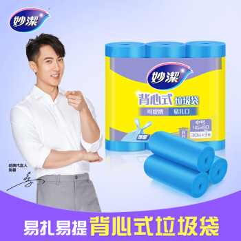 妙洁 背心式手提垃圾袋中号90只 45cm*60cm 做好干湿垃圾分类