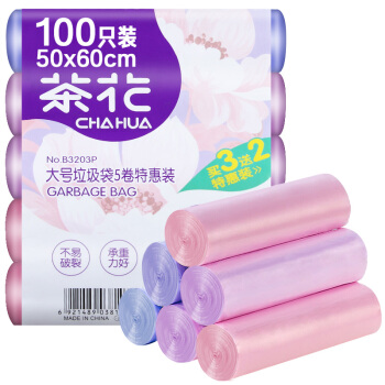 茶花垃圾袋加厚100只中大号50*60cm分类家用厨余厨房清洁袋垃圾桶方便收纳袋 B3203P