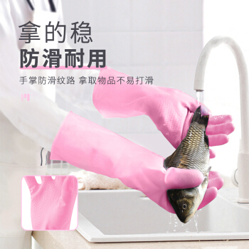 加品惠 乳胶手套洗碗洗衣清洁pvc加厚炫指橡胶皮手套中号2双装SY-1742A