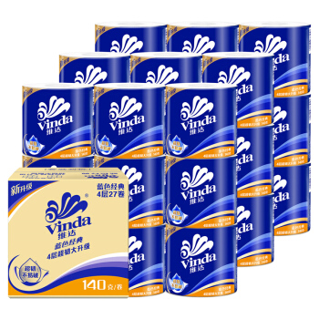 维达(Vinda) 卷纸 蓝色经典4层140g卫生纸巾*27卷(整箱销售)