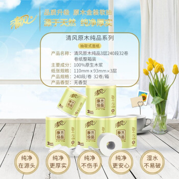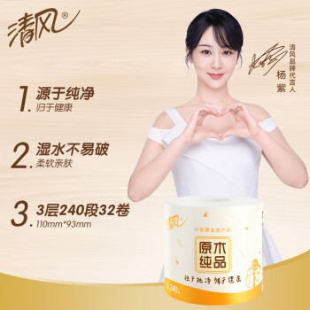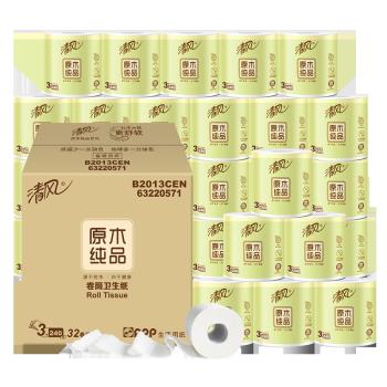 清风 卷纸卫生纸整箱32卷原木纯品3层240段卷筒纸27卷+5卷 纸巾手纸厕纸
