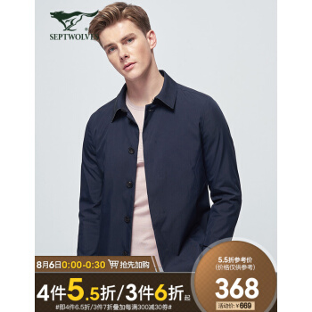 风衣>>【双防面料】七匹狼风衣2020新品男装翻领单排扣商务休闲男士衣服风衣外套男装衣服正品 101(藏青) 175/92A/XL