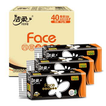 洁柔卷纸(C&S) 无芯加厚4层卫生纸40卷 (黑Face面子系列 实芯卷纸温和亲肤厕纸10卷*4提 )整箱销售