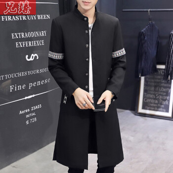 风衣>>兄臻 风衣男长款过膝韩版薄款春秋大衣 男士中长款披风潮流个性帅气百搭修身长外套秋季男装 DL906黑色 XL