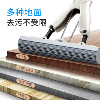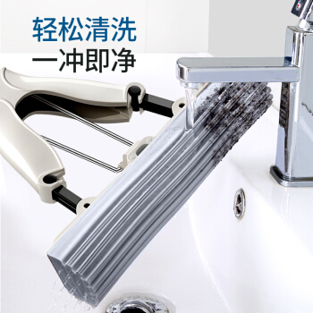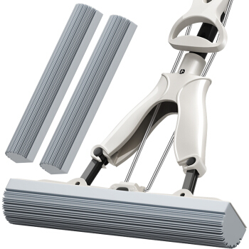 尔蓝(Airline)免手洗对折式38cm胶棉拖把家用拖把挤水免手洗懒人海棉吸水地拖拖布2个头
