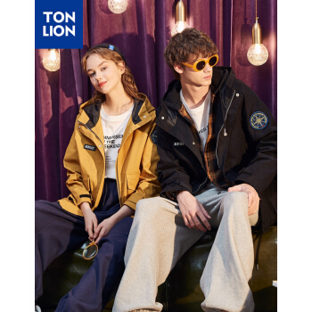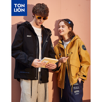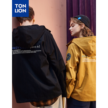 唐狮2020春新款外套 情侣工装连帽风衣夹克风衣 男款/黑色 L