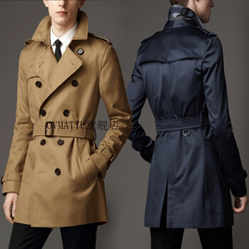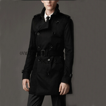 风衣>>GORANKADI香港潮牌2019春秋薄男士长款双排扣英伦修身中长款防水大衣风衣外套有大码 黑色 4XL