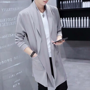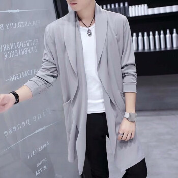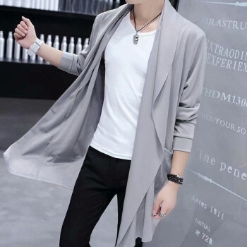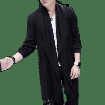 离梢夏季薄款冰丝连帽风衣男中长款2020春夏新款帅气韩版青年学生披风外套潮流防晒衣服 黑色 L
