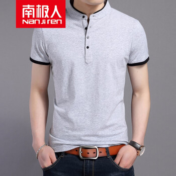 南极人短袖T恤男纯色棉新品男士夏装韩版修身春夏季针织衫简约半袖上衣舒适潮流纯棉POLO衫打底衫男装 短袖灰色 XL