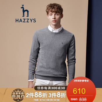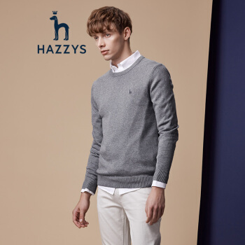 【商场同款】哈吉斯HAZZYS 秋季针织衫男纯色简约百搭针织ABYZD08CX01 灰色GE 170/92A95 46