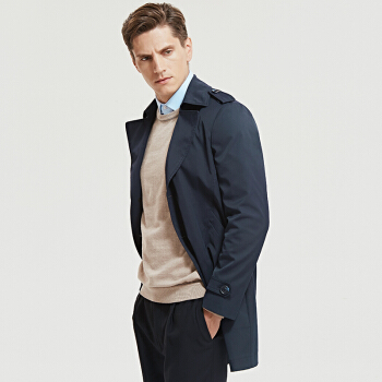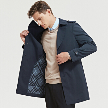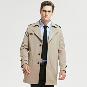 风衣>>七匹狼男士休闲风衣 中长款男装2020年春季新品净色复合面料单排扣翻驳领外套 701(卡其) 180/2XL