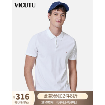 威可多VICUTU男士短袖针织衬衫领修身双色可选商务POLO衫VRW88283992 白色 175/92A/L |