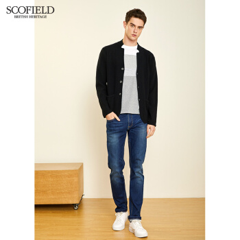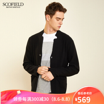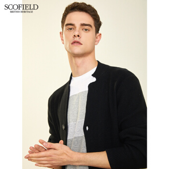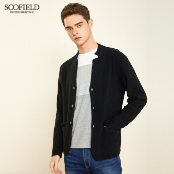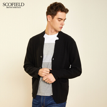 针织衫/毛衣>>【商场同款】SCOFOIELD2020春季新款纯色开衫毛衣潮流时尚口袋简约男士针织衫外套男 黑色 180