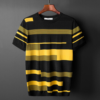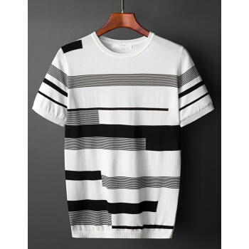 稻草人品牌新品圆领毛衣男潮T恤夏款宽松薄款冰丝针织衫男半短袖打底衫 白色 M /160