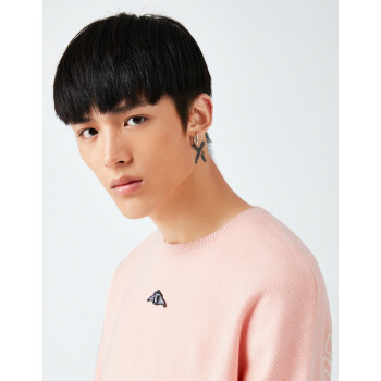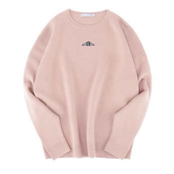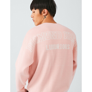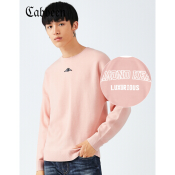 卡宾男装个性字母青年圆领长袖休闲针织衫时尚街头宽松毛衣秋款H 粉红色04 48/170/M
