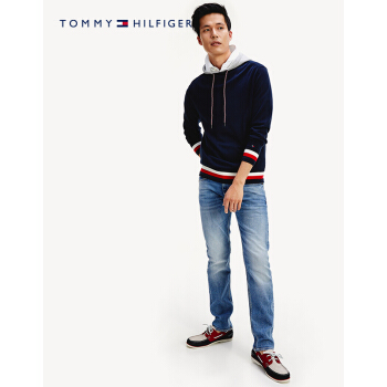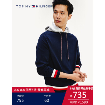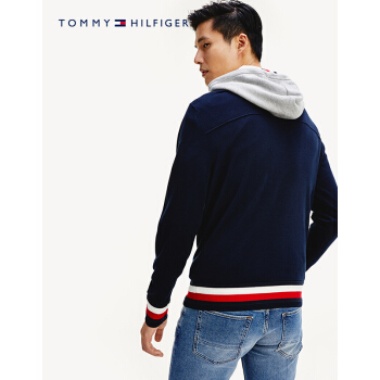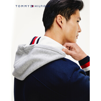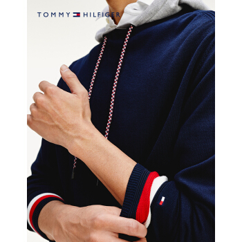 TOMMY HILFIGER男装2020春季拼接撞色连帽套头针织衫 MW0MW13128 藏青色DW5 M |