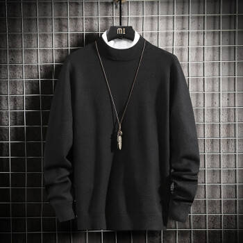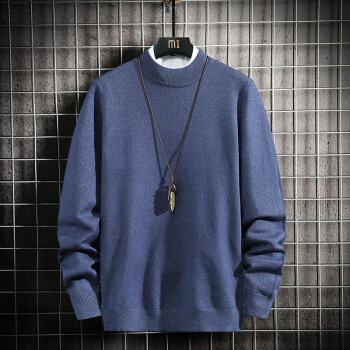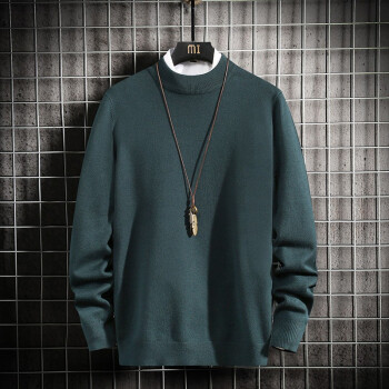蓝缕金【LANLVJIN】毛衣男秋季新品宽松线衣男青年套头半高领针织衫纯色长袖体恤针织衫2020 墨绿色