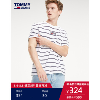 TOMMY JEANS 男装春夏短袖针织T恤(宽松版)-DM0DM06069 白色条纹100 M