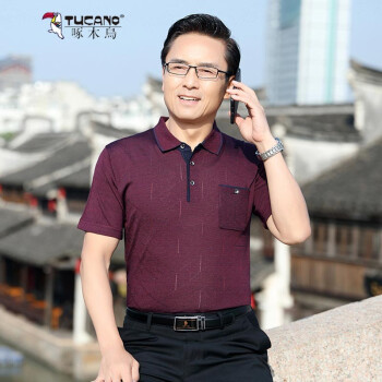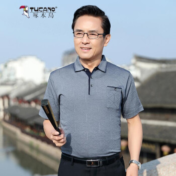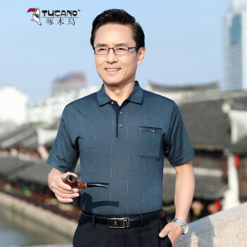 啄木鸟(TUCANO)短袖T恤衫男针织衫上衣中年人男士薄款小衫中老年爸爸装翻领POLO衫夏装新款半袖 绿色 170