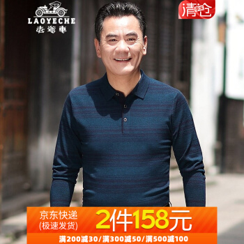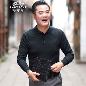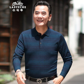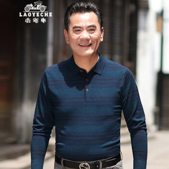 老爷车爸爸装长袖t恤男中年男士春秋季针织衫薄款体恤40岁50中老年男装秋装宽松大码毛衣男老人爷爷衣服 29031藏青色 175【建议135-145斤】 |