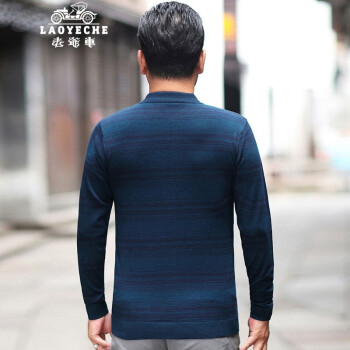 针织衫/毛衣>>老爷车爸爸装长袖t恤男中年男士春秋季针织衫薄款体恤40岁50中老年男装秋装宽松大码毛衣男老人爷爷衣服 29031藏青色 175【建议135-145斤】