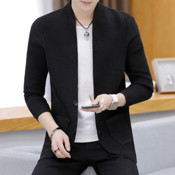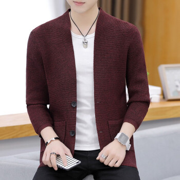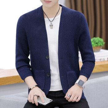 针织衫男士2020春秋季潮牌新款韩版修身休闲长袖纯色开衫毛衣潮流时尚百搭外套 Z8505 深灰色 XL