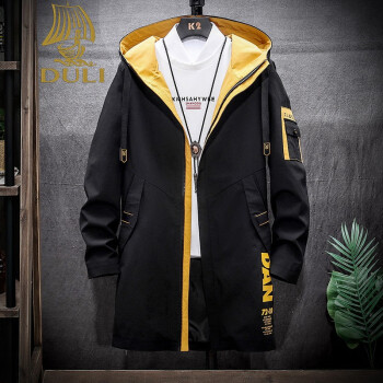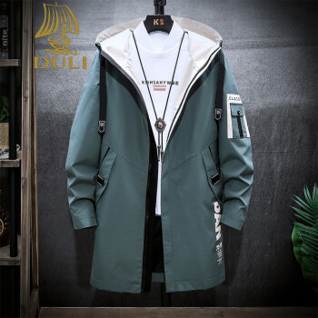 独励(DULI)青少年风衣男中长款韩版潮流春秋季2020新款初中高中学生帅气外套 DCQ8035卡其 XL