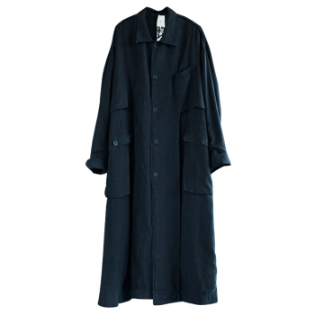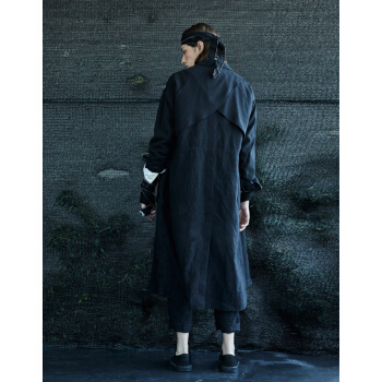 野无风衣男原创设计男装2020秋季新款男士纯色翻领多口袋后背交叉设计长款风衣男潮 粗粝黑 S